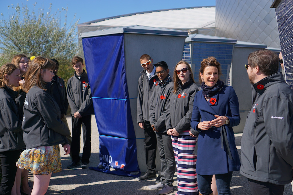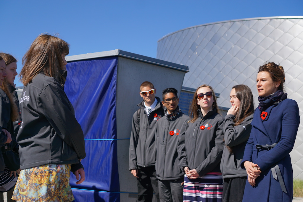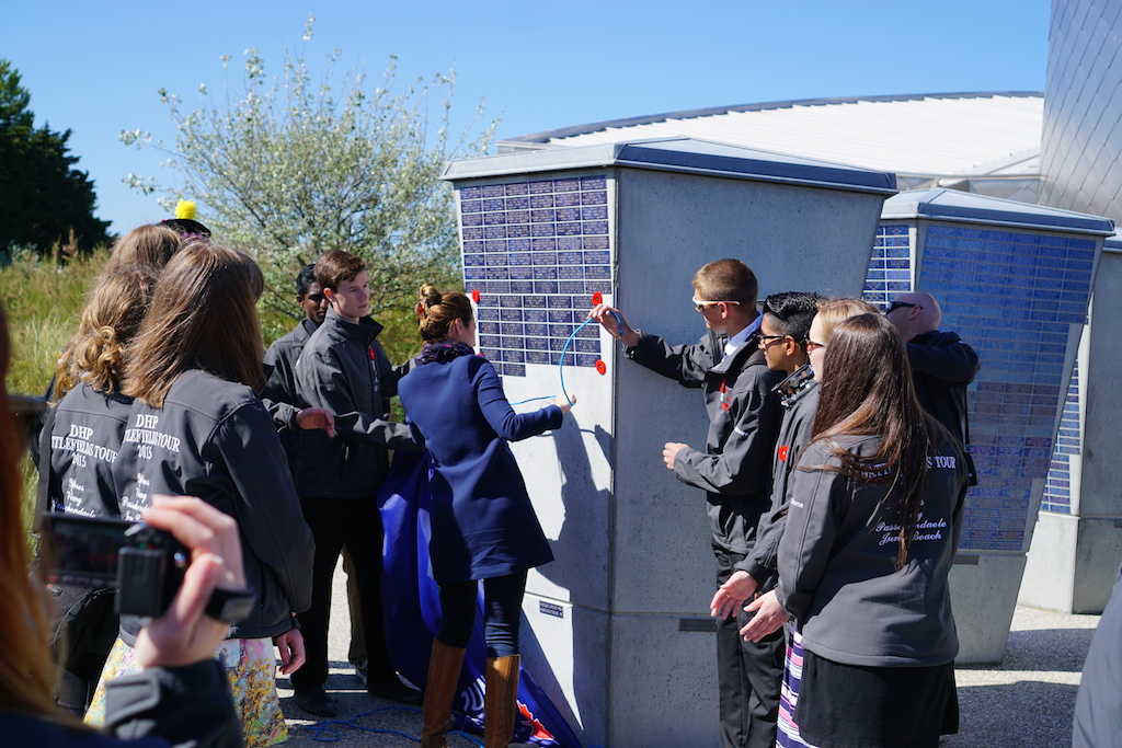 The Juno Beach Centre was pleased to welcome students from the Digital Historian Project from Dufferin County. In addition to their presence at the official ceremonies organized by the Comité de Débarquement, the students held their own event this morning to official unveil the 2015 Commemorative Bricks sponsored at the Centre.