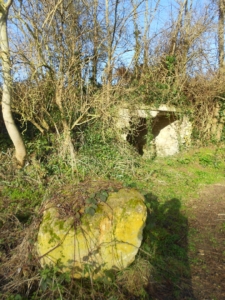 Les canons étaient du côté des Bruyères. Dans le bois de Tombette, il y avait les abris. Les hommes vivaient là. Des tranchées reliaient Tombette au Parc du Château de Tailleville. Il y avait des tranchées partout. Le terrain entre ces deux sites fortifiés était truffé de mines et entouré de fils barbelés. Je me souviens d’un gradé avec ses 2 chiens bergers allemands. Je me souviens aussi d’un jeune homme de mon âge. Il avait perdu ses 4 frères sur le front de Russie et sa famille, morte sous les bombardements de Cologne. Il était coiffeur. On avait le même âge, à peine 18 ans ».
