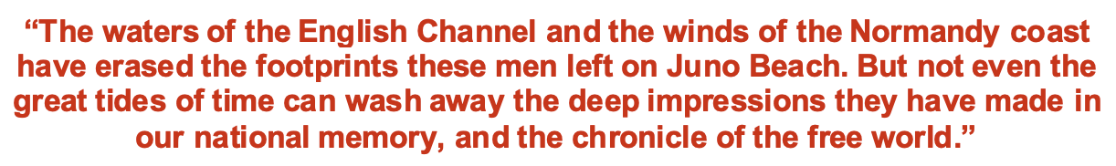 It has been said that the Canadian victory at Vimy Ridge was the symbolic birth of a nation. Nearly 30 years later, Canada earned its place in the world on the shores of Juno Beach.