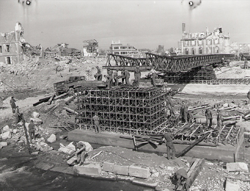 The RCE played an important part in the major campaigns which brought about the German defeat. Operations in Sicily and Italy posed special problems. As the Germans retreated through the mountainous terrain, they destroyed the few roads available to the pursuing Allies, as well as bridges over the interminable water barriers and stream beds. Many of the latter were empty in the dry summer months but strewn with large boulders which testified to the torrents unleashed during the rainy season. Facilitating mobile operations in such country proved to be an arduous task. The nature of this campaign provides an example of the vital job done by the RCE. A.J. Kerry and W.A. McDill’s The History of the Corps of Royal Canadian Engineers, vol. II 1939-1946 describes