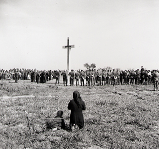 When the Canadians left the Ortona sector there were many who remained behind-their resting-place a headland overlooking Ortona Bay. As a last duty the 2nd Field Park Company marked the haven with a tall wooden cross, on which was superimposed a crusader’s sword (Kerry and McDill, v. II, p. 178).