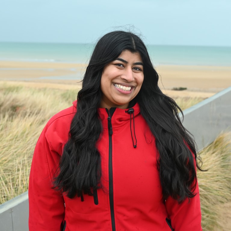 « J’ai découvert le Centre Juno Beach durant l’été 2025 lors d’une visite en tant que touriste, et j’ai immédiatement su que je voulais relever le défi d’y travailler. Marcher sur Juno Beach et explorer le musée m’a permis de mieux comprendre l’ampleur du Débarquement de Normandie et les sacrifices des soldats canadiens. Les noms, les objets et les histoires personnelles ont rendu cette histoire plus réelle et plus humaine pour moi. En tant que Canadien, ce lieu renforce mon lien avec l’histoire de mon pays. Je poursuis actuellement des études en histoire et j’aimerais devenir professeur d’université. Être guide me permet de développer mes compétences en tant qu’éducateur et de transmettre cette mémoire aux visiteurs du monde entier. C’est un honneur de contribuer à faire vivre la mémoire des soldats pour les générations futures. »