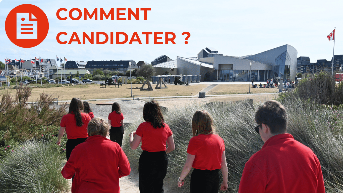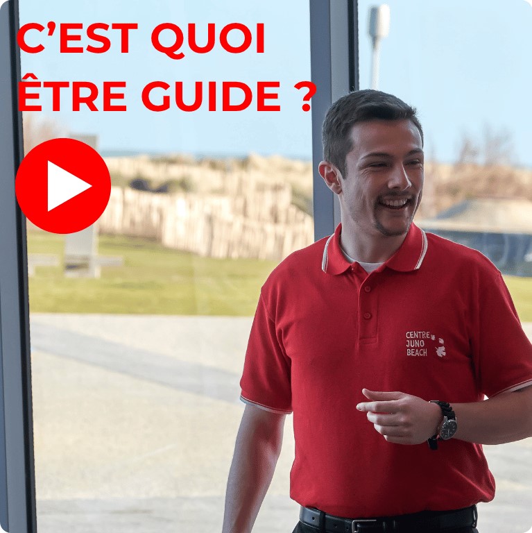 Chaque année de jeunes guides canadien.ne.s viennent travailler en Normandie comme guides au Centre Juno Beach ! C’était la volonté des vétérans fondateurs du Centre Juno Beach que de jeunes guides canadien.ne.s transmettent la mémoire aux jeunes générations. Ces guides qui ont une vingtaine d’années, mettent ainsi en perspective le jeune âge des soldats qui ont débarqué sur les plages de Normandie en 1944.
