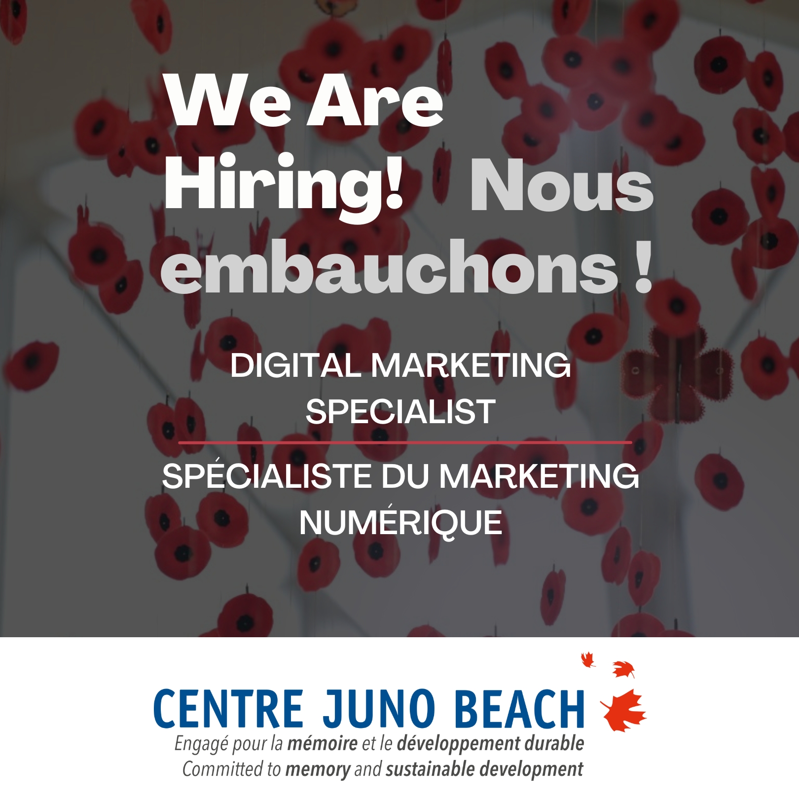 L’ASSOCIATION DU CENTRE JUNO BEACH (ACJB) recherche un(e) spécialiste bilingue (anglais/français) du marketing numérique pour élargir notre empreinte digitale et renforcer notre capacité de narration au Canada. Le ou la candidat(e) idéal(e) possédera un talent marqué pour le storytelling créatif, de l’expérience dans la conception et la diffusion de contenus multimédias sur divers canaux numériques, ainsi que d’excellentes aptitudes rédactionnelles en anglais et en français.