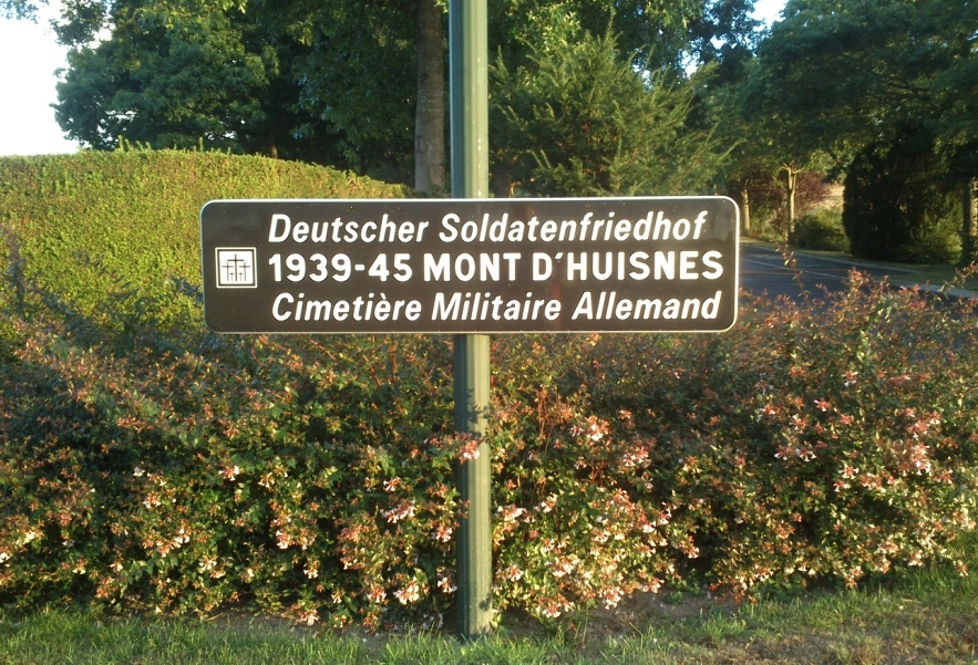 Ce sont donc quelques-uns de ces hommes, femmes et enfants alsaciens de La Chauvinerie et d’autres camps de Poitiers qui sont commémorés sur la plaque qui couvre leur tombe à l’entrée du cimetière militaire du Mont-d’Huisnes. Ils ont d’abord été enterrés près du camp, mais dans les années 1950, il a été décidé par le nouveau gouvernement allemand, en consultation avec le gouvernement français, de rassembler les nombreux petits cimetières allemands dispersés en France au sein de quelques grands cimetières. Il faut noter que lorsque ces individus sont décédés, l’Alsace-Lorraine faisait partie de l’Allemagne conquise, et n’avait pas encore été réintégrée à la France. Ceci est la raison pour laquelle l’Organisation des sépultures de guerre allemandes a participé à leur « réenterrement ». À cette époque, de nombreux morts de La Chauvinerie, qui avaient encore de la famille en Alsace-Lorraine, ont vu leurs tombes déplacées vers leur région d’origine. Seuls ceux dont la dépouille n’a pas été réclamée, ou qui ont été identifiés comme des prisonniers de guerre allemands d’un des autres camps de Poitiers, ont été déplacés au cimetière allemand du Mont-d’Huisnes.