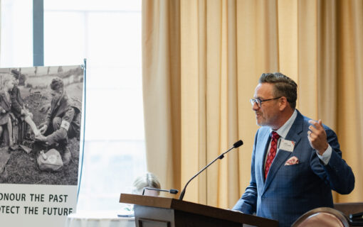 Next came a stirring conversation with Nathalie Worthington, Director of the Juno Beach Centre, and Chris LaBossiere, President of the Juno Beach Centre Association. “Juno Beach Centre at a Crossroads” focused on the future of Canada’s only Second World War Museum in Europe, highlighting the Centre’s evolving role and urgent needs as it navigates increasing threats to its existence.